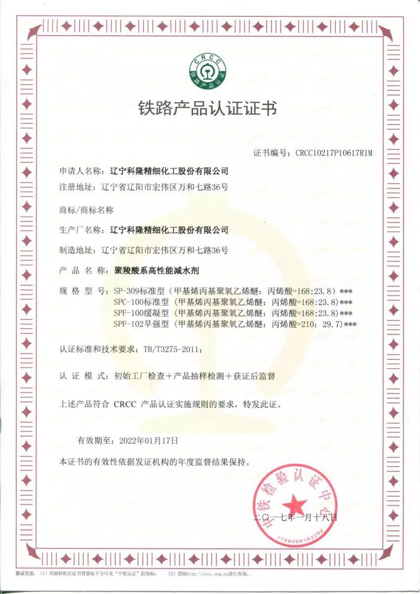 CRCC認證證書